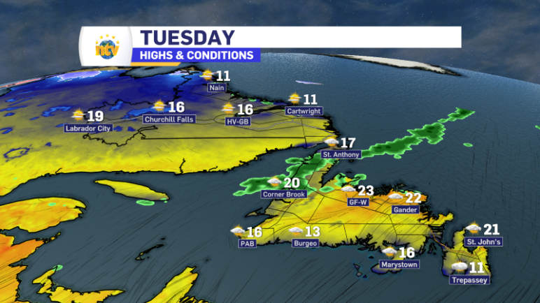 ST. JOHN’S/BONAVISTA Today: Mainly cloudy. 60 percent chance of flurries this morning with risk of freezing drizzle. Wind north 40 km/h gusting to 60. High plus 2. Wind chill minus 10 this morning. UV index 5 or moderate. Tonight: Cloudy. Becoming partly cloudy this evening. Wind north 20 km/h gusting to 40 becoming light near […]