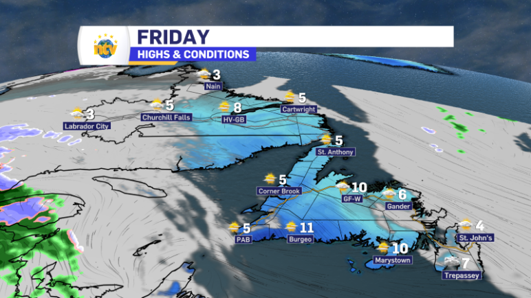 ST. JOHN’S/BONAVISTA Today: Mainly cloudy. 60 percent chance of flurries this morning with risk of freezing drizzle. Wind north 40 km/h gusting to 60. High plus 2. Wind chill minus 10 this morning. UV index 5 or moderate. Tonight: Cloudy. Becoming partly cloudy this evening. Wind north 20 km/h gusting to 40 becoming light near […]
