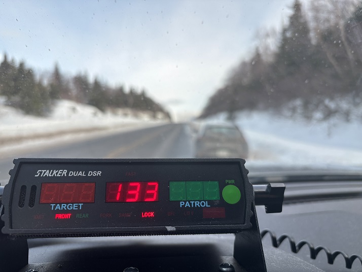 On Feb. 28, shortly before 3:30 p.m., police patrolling Route 430 through Gros Morne National Park observed a vehicle travelling at a speed of 133 km/hr in an 80 km/h zone near the community of Rocky Harbour.