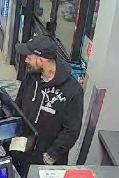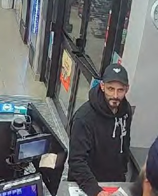 The suspect appears to be a tall, thin male with a dark, chin-strap beard. He was wearing a black baseball hat, black American Eagle sweatshirt and black jeans.