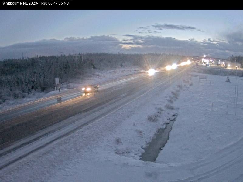 Across Newfoundland and Labrador, roads are snow-covered with icy and slushy patches. Visibility is fair to good. Travel is not recommended from Whitbourne to Southern Harbour.