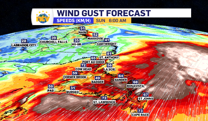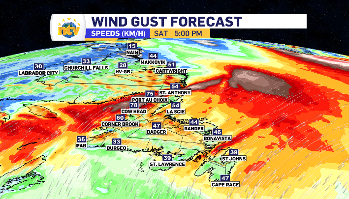 The warmup continues in Newfoundland Saturday, with some regions even pushing for ten degrees. It’s all fueled by increasing south winds that will pick up to average gusts of 60-90 km/h across Newfoundland as a whole.