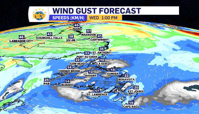 Winds remain light across Newfoundland Wednesday, gusts pick up in Labrador