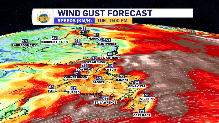 The first result of this wind is the windchill. With the wind off the water, Tuesday starts with the entire province feeling colder than any day in February.