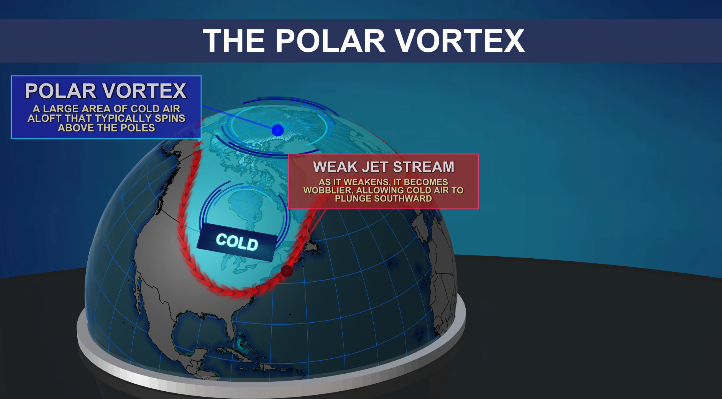 Once again this winter we’re seeing the affects of a polar vortex, where the jet streams that typically keep the arctic air further north loosen and allow for that colder temperature to be felt further south.